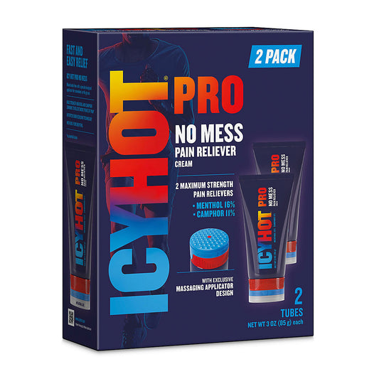 Icy Hot Pro No-Mess Pain Relief Cream Tube, Massaging Applicator With Menthol & Camphor, 2 pk./3 oz.