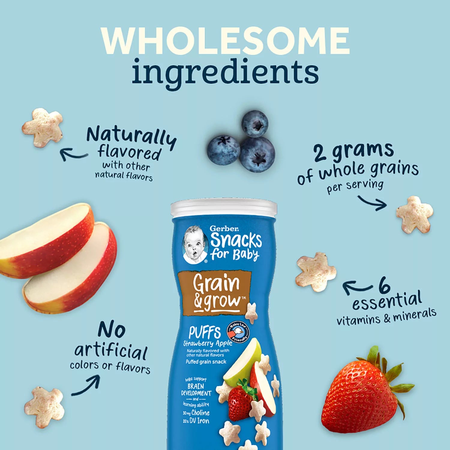 Gerber Grain & Grow Cereal Snack Puffs, Variety Pack, 1.48 oz., 8 ct.